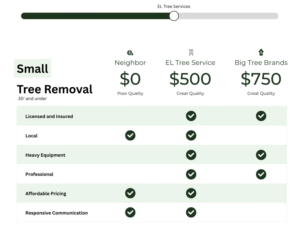Prices may vary depending on specific job needs. The above mentioned numbers are estimated costs for a "normal" tree removal which doesn't include complications.